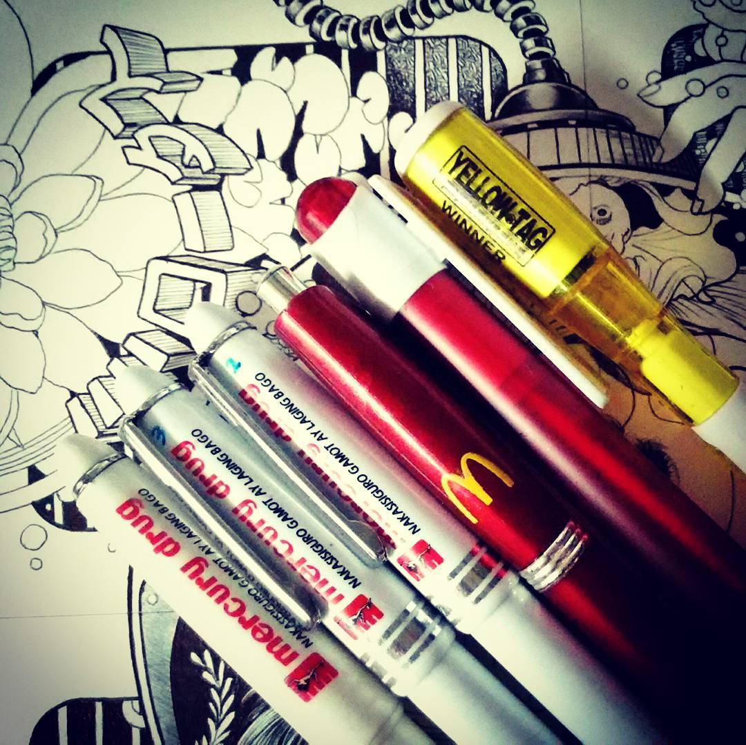Here's my secret stash of very good ballpoint pens. They're all freebies!🤣 I hv always loved their various concentration of inks. #ballpointart #ballpointpen #illustration #popsurrealism #lowbrow #artistsofSEA One of these days, I'm gonna make a mixed media $NFT piece w/ these.