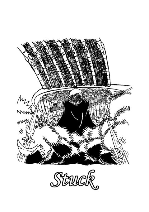 Inktober 2021 Theme : Dark Fantasy Day 12 : Stuck #jimmy_asawa #inktober2021 #inktober #darkfantasy #day12 #stuck #bamboo #drawing #inking