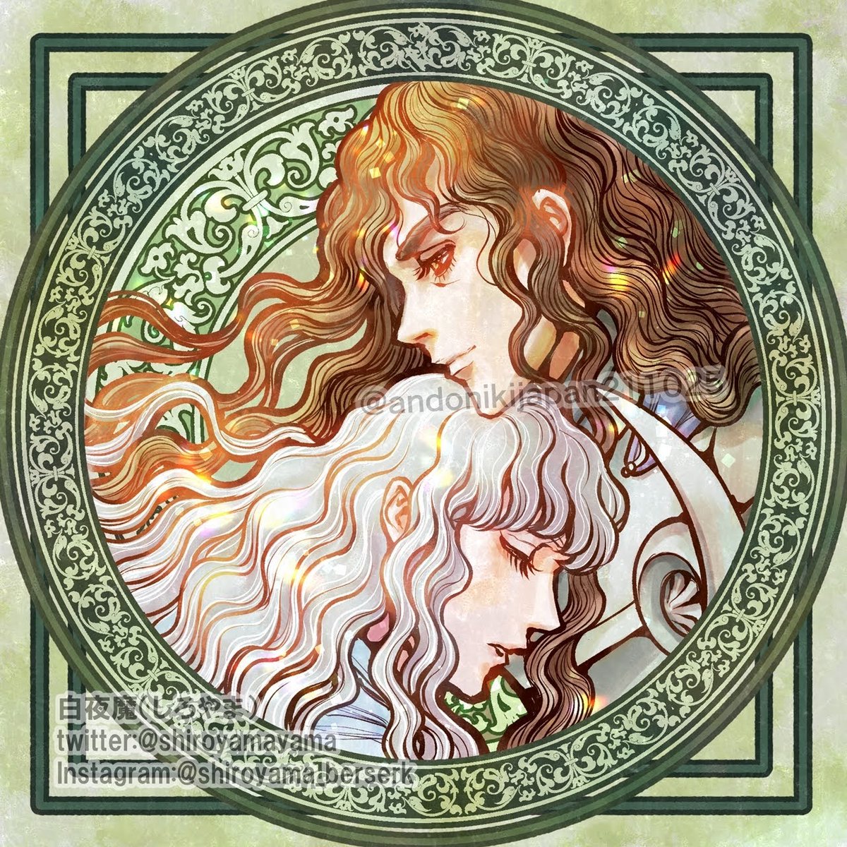 グリフィス&ロクスの新作です✨ この二人をとにかく美しく描きたくて何度も挑戦してきました。今回のこれは今まででも特に気に入った仕上がりです。 描いてよかった! #ベルセルク #新生鷹の団 #新生鷹の団ファンクラブ #Berserk #berserkart #BandoftheFalcon