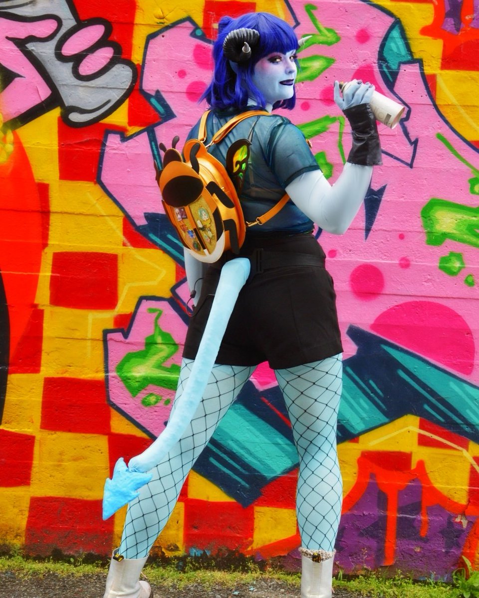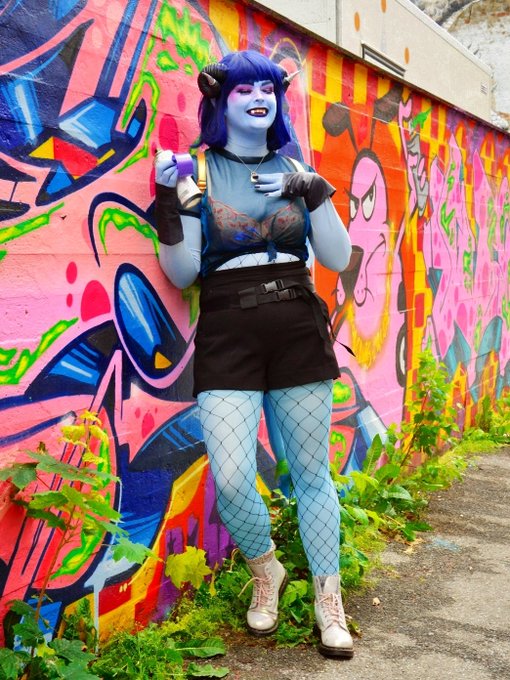 Today I found out that the "Courage the cowardly dog" mural has been redesigned, rip scardy dog *sends a kiss to the sky* 📸 @_KenCos_ Edit and model Me #jesterlavorre #criticalrolecosplay #criticalrole #jestercosplay #banksyjester