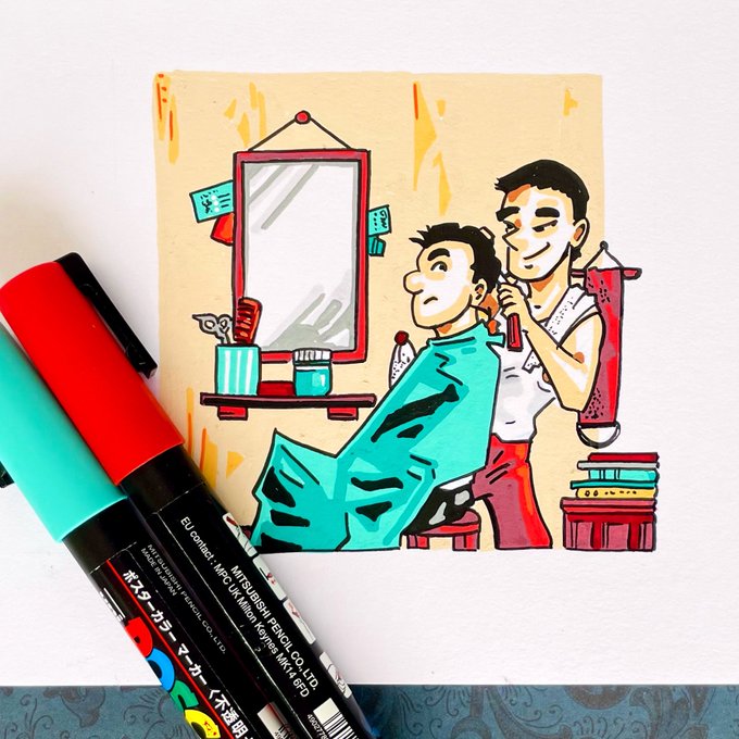 Inktober day 29: Uh-oh! The vampire barber. #inktober2022 #Inktober #inktoberuhoh #inktoberday29 #vampire #barber
