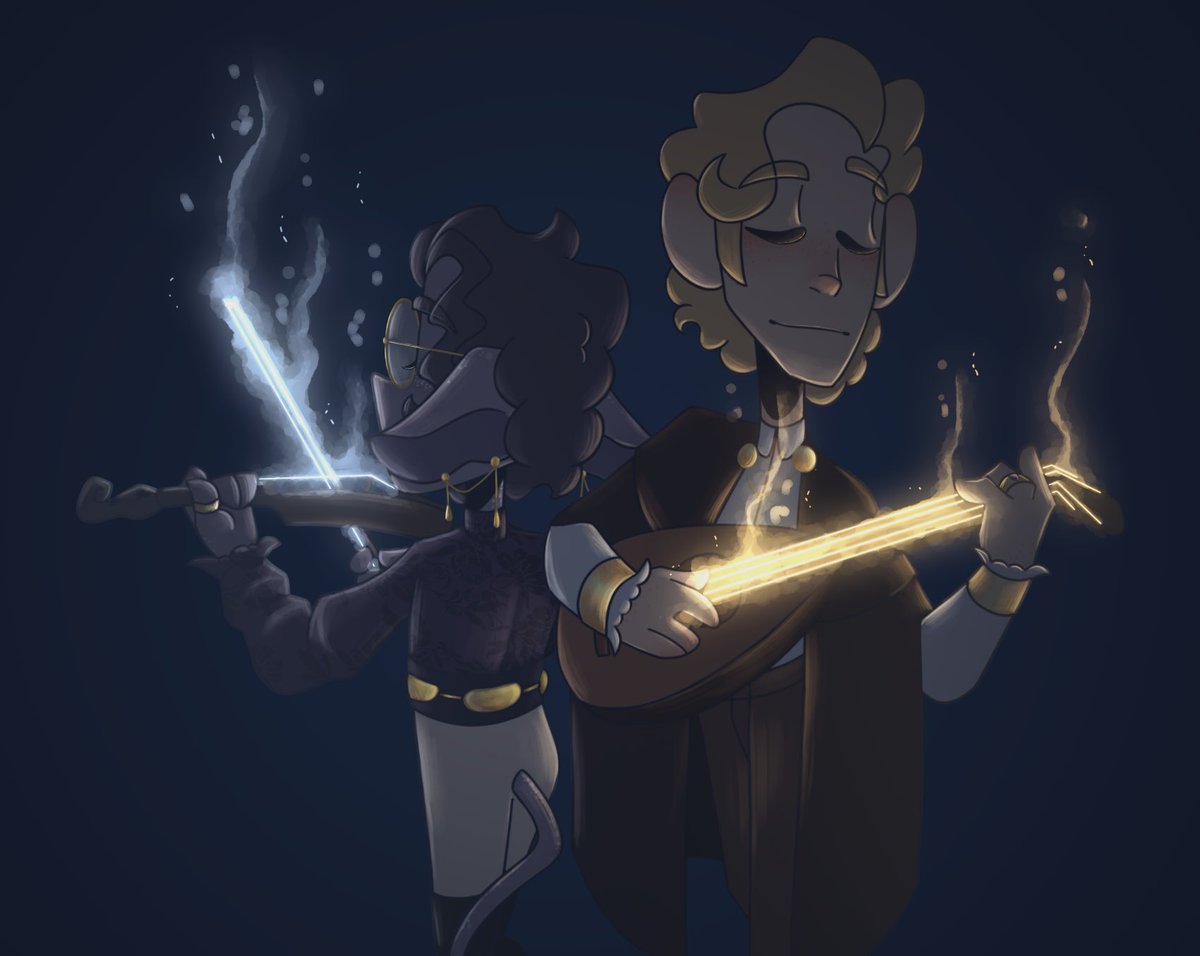 “How did you become a bard?” “I just sort of picked up a lute one day and figured it out. I had to do it to survive. What about you?” “I’m… classically trained.” Character on the right belongs to @QUlNNOTHY! #dnd #digitalart #dndart #dungeonsanddragons #bards #CurseOfStrahd