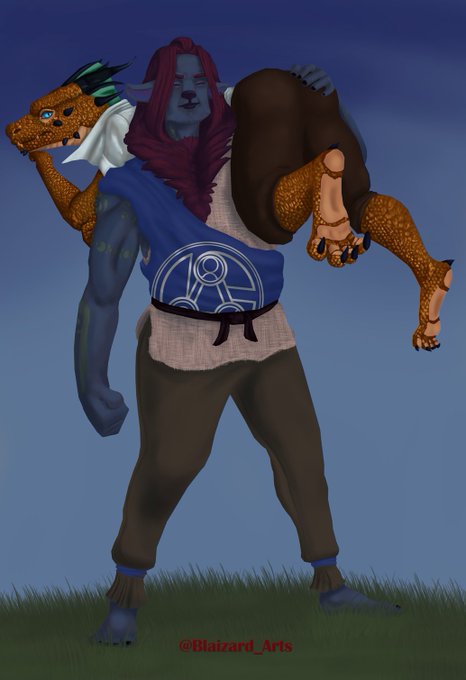 the last 2 members of the expedition: Azure, the #Dragonborn bard, a "Prince Charming" individual, an updated from the sheet I made for the #bards4bards event a few months ago, and Laurician, the Firbolg monk, a close friend and reluctant bodyguard. #dungeonsanddragons #dndart