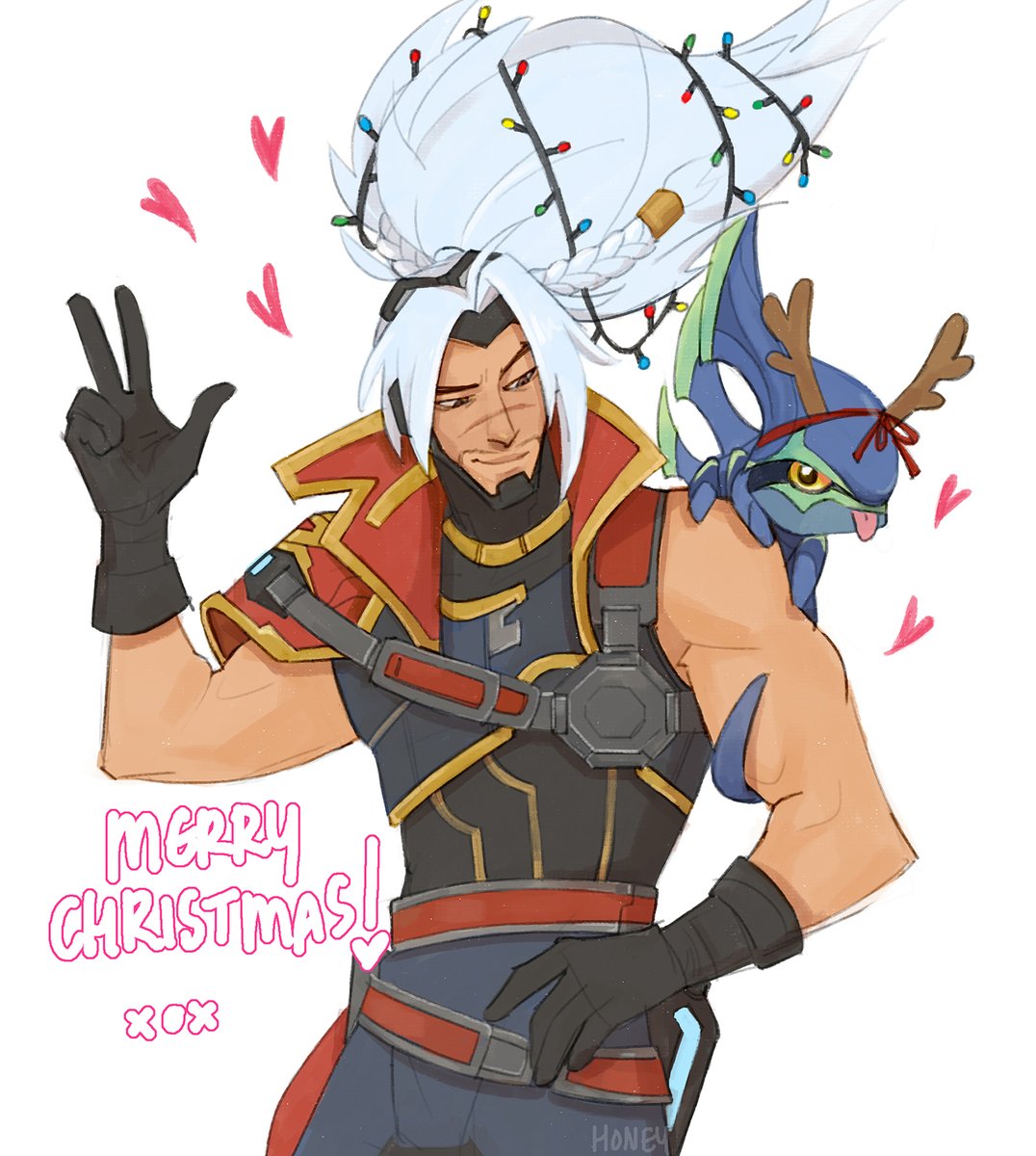 merry christmas to @rkgkjj i was your secret santa ^^🎅 drew you odyssey yasuo and his lizard pet being festive 🎄 happy christmas and happy new year x #bardsecretsanta