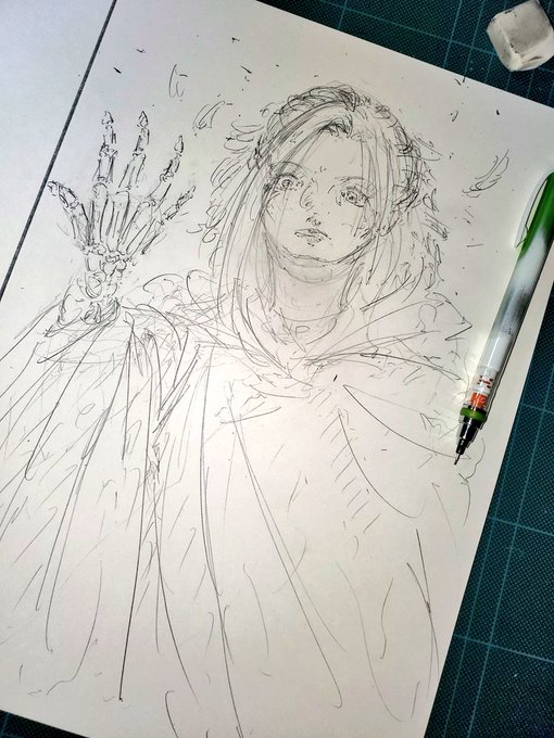 おはよーございます☀️ 早朝にざっと描いたモノ(画像①) #オリキャラ #死神 色々あるけど基本的には変わってないんです💦 #イラスト好きな人と繋がりたい #アトリエの系譜 #みんなで楽しむTwitter展覧会 #絵描きの輪 #baristaisdead #yamazakiyacoffee