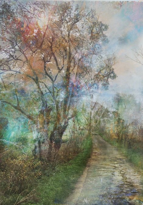 Light rain passed over the lane leaving it glistening in the afternoon light, a more detailed mixedmedia approach in these pieces - listening to whilst working @Manics #ultravividlament #artistontwitter #gouache #watercolor #contemporaryart #Leicester #barkby #ImageDescription