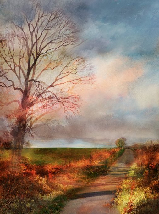 Continuing my exploration of light changes over the lane ‘Before the Dawn’ is a companion piece to my work ‘The Tobacco Sky, Barkby’ currently on show with #patchings until Aug 13th #ArtistOnTwitter #art #watercolour #pastels #gouache #barkby #TALP painters-online.co.uk/competitions/t…