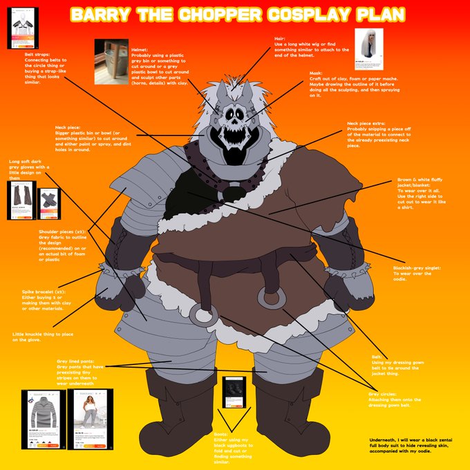 guys im making a cosplay out of barry the chopper who is my love and he is everything to me (anyway heres like a little plan tho i updated a bunch of things on a doc) #fma #FullMetalAlchemist #barrythechopper #cosplay #fmab
