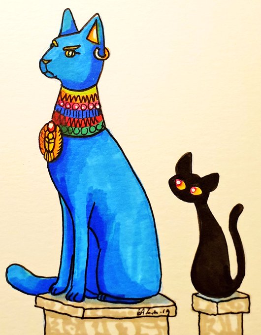 エジプトでは猫は神様だったみたい。 I’m going to draw a Bastet but it’s like a different creature🤣 #猫 #バステト #イラスト #イラスト好きな人と繋がりたい #イラストレーター #水彩 #art #cat #cats #catstagram #illustration #illustrator #drawing #watercolor #bastet #Egypt