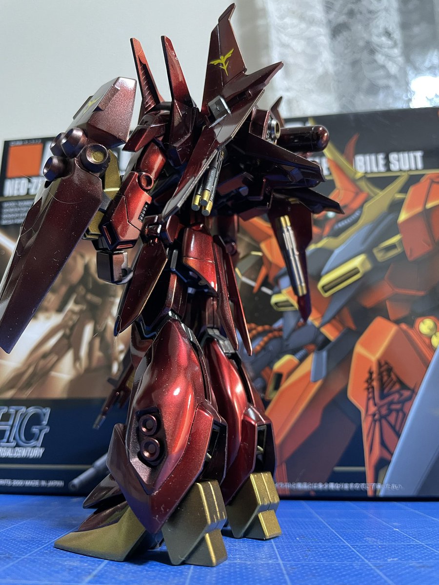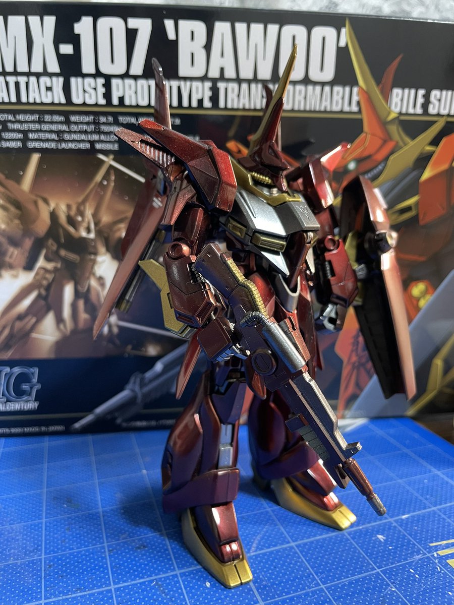 おはようございます! 昨日の夜墨入れとデカールだけのつもりがあれよあれよで HG 1/144 バウ完成☺️ シールドとビームライフルちょっと失敗が悔やまれる…あとほこりが😂 #ガンプラ #ガンプラの画像を貼るとRTされると聞いて #ガンプラ好きと繋がりたい #ガンプラは自由だ #BAWOO #バウ