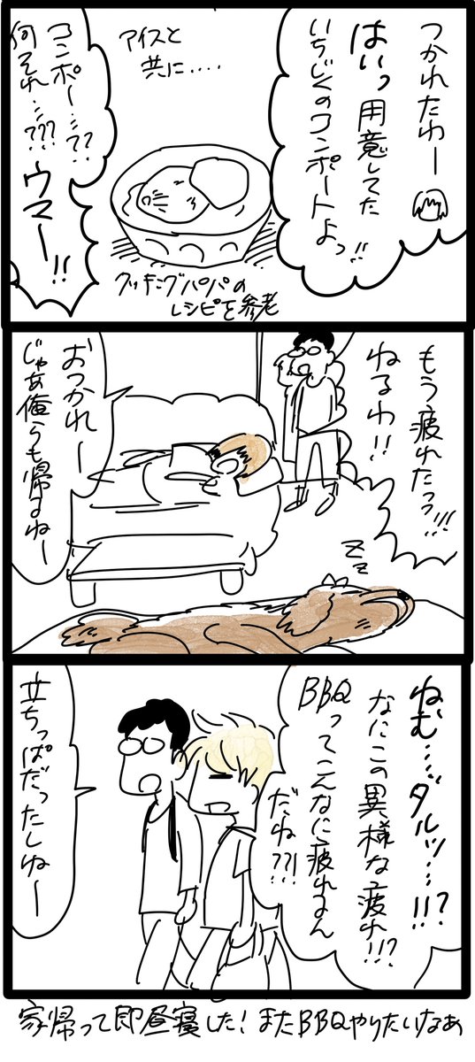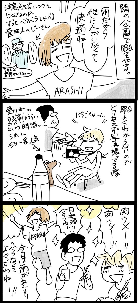 雨の中、屋根の下でバーベキューをした。 #bbq #バーベキュー #1日1絵 #水彩画 #手帳 #トラベラーズノート #猫 #スケッチジャーナル #マンスリージャーナル #絵 #イラスト #絵描きさんと繫がりたい #イラスト好きな人と繋がりたい