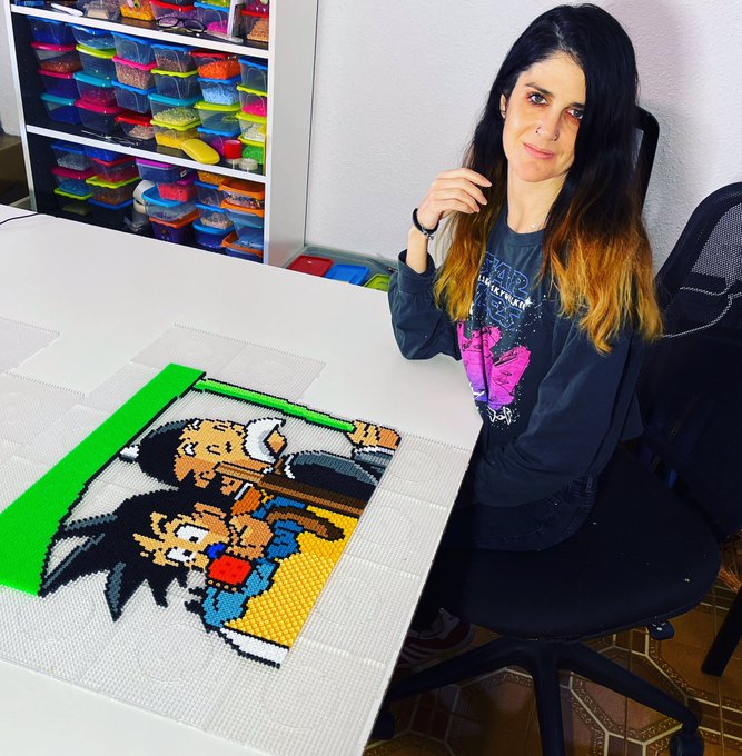 Tres Puntos Colega 🔥 Empiezo a dar color ☺️ Espero que os guste 💫 Feliz día ☀️ #beads #pixelart #chichoterremoto #dashkappei #anime #fanartanime