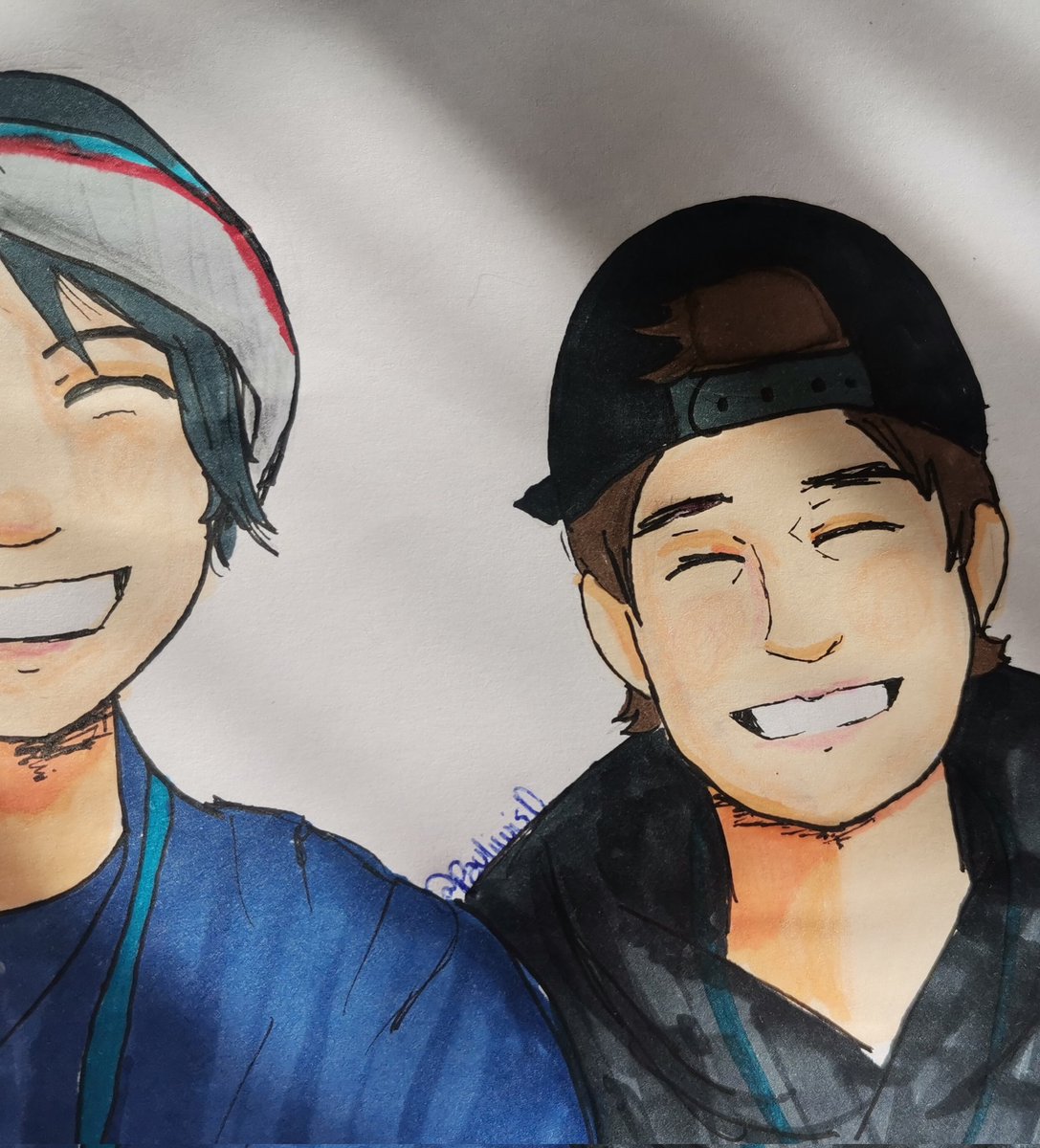 Había que hacer la versión normalita y la con filtro jiji ♡ Mencanta cuando actores se sacan fotos tras bambalinas y son los enemigos xD aquí es como lo mismo, reamo ♡ #BeanieDuo #Karmalart #KarmalandV #LuzuFanart #Quackityfanart