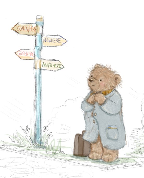 We've all faced a crossroads like this, but where to go? Somewhere? Nowhere? Elsewhere? Or Anywhere? #illustration #childrensbooks #publishing #bearsoftwitter #ScruffyBear