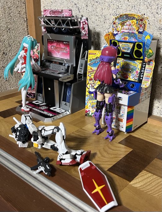 #5月になったのでフォロワーさんに自己紹介しようぜ 介護の合間に適当にやってます。 最近頻度が高い趣味が1枚に収まったので貼っときますね #ガンプラ #フレームアームズ・ガール #初音ミク #beatmaniaiidx #popnmusic