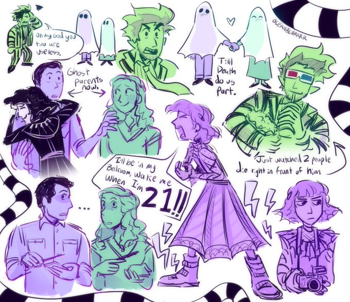 Beetlejuice the musical warmup sketches. I love Adam and Barbara so much you don't understand. #beetlejuice #beetlejuicethemusicalfanart