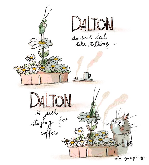 Dalton doesn’t feel like talking…☕️ #characterdesign #cats #beetles #coffee #illustration #coffeebreak