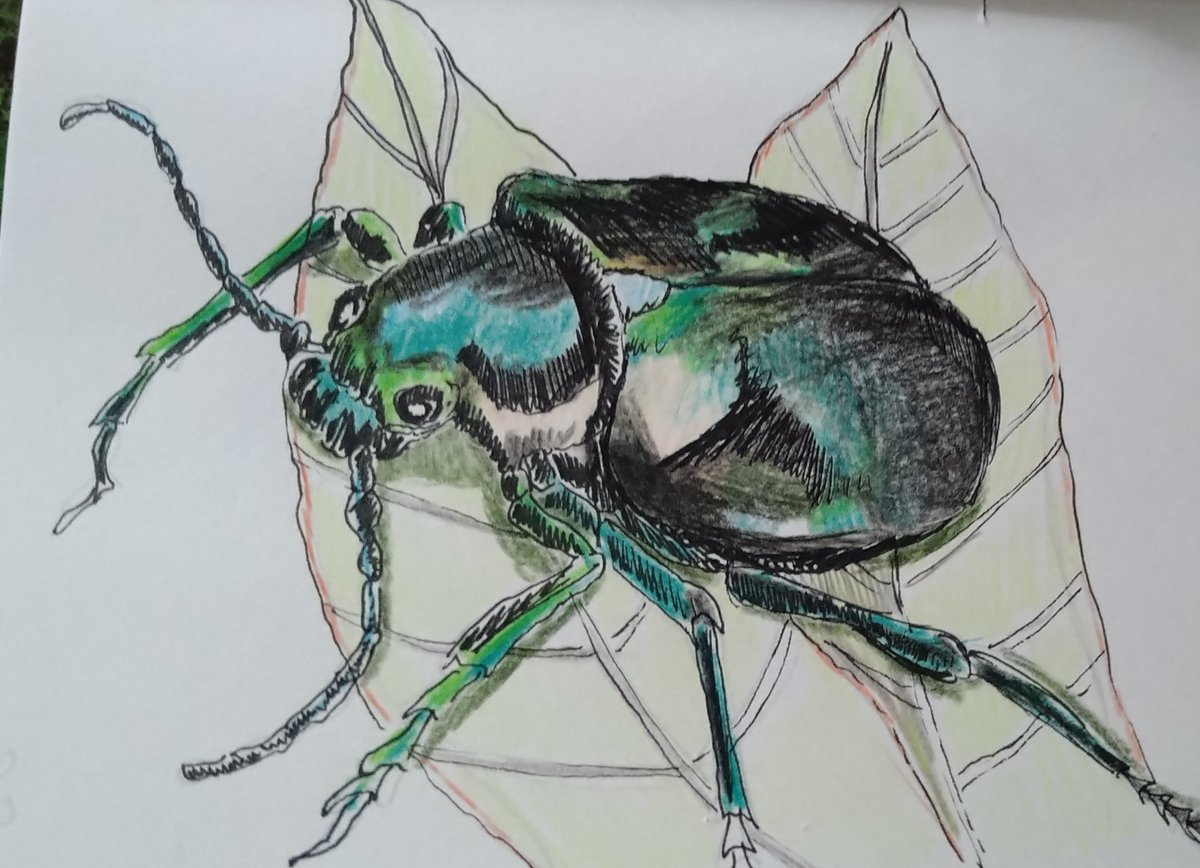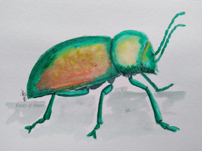 Today's #Sketching is Day 27 Dogbane leaf beetle @ksneathart @caseybella3 uhmmm 🤔🤪 bugs are really really difficult to draw I've decided 🤣🐜🕷️🐞🦋🦗🦟🐝🐌🦂🐛🤪 #nature #wildlife #insects #beetles #inkdrawing #watercolor #ArtistOnTwitter #art #artist ❤️🤗