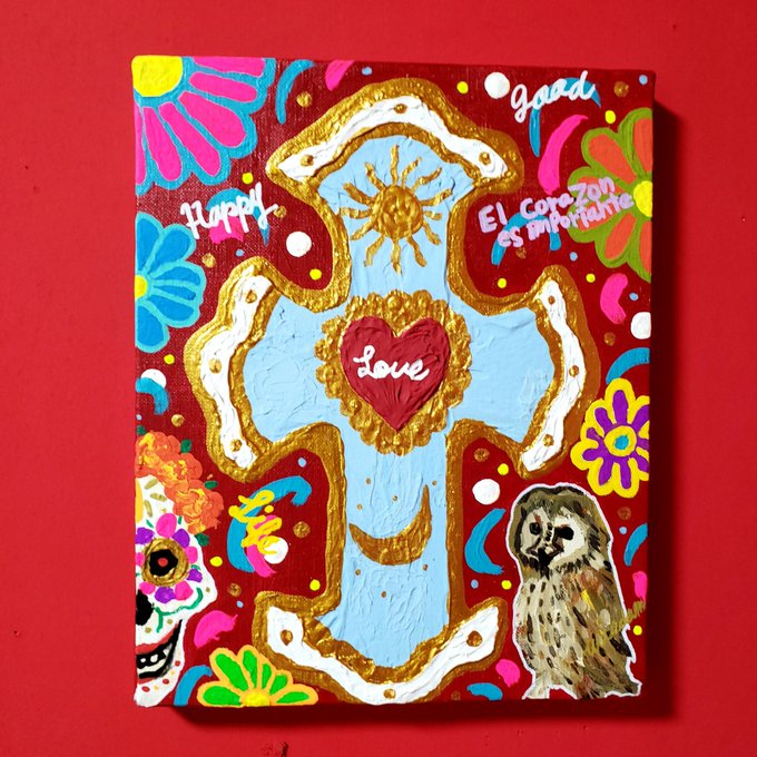 NEW ARTWORK 【CROSS】Mixedmedia F3号/273×220mm 幸せになれる十字架アート🌈🙏❤️ #art #現代アート #芸術家 #絵描きさんと繋がりたい #アートで世界を変える #メキシコ #ArtistOnTwitter #BeHappy