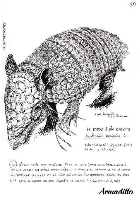 Day 15 - Armadillo - #inktober #inktober2022 #sciart #armadillo #tatou #Euphractus #reproduction #behavior
