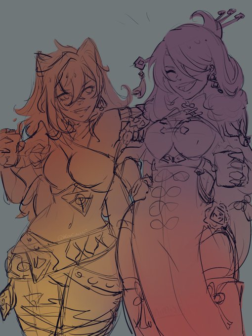 Another batch of hand sketches that escalated, the beiguang version ♡ 💕 #GenshinImpact #原神 #Beidou #Ningguang #beiguang