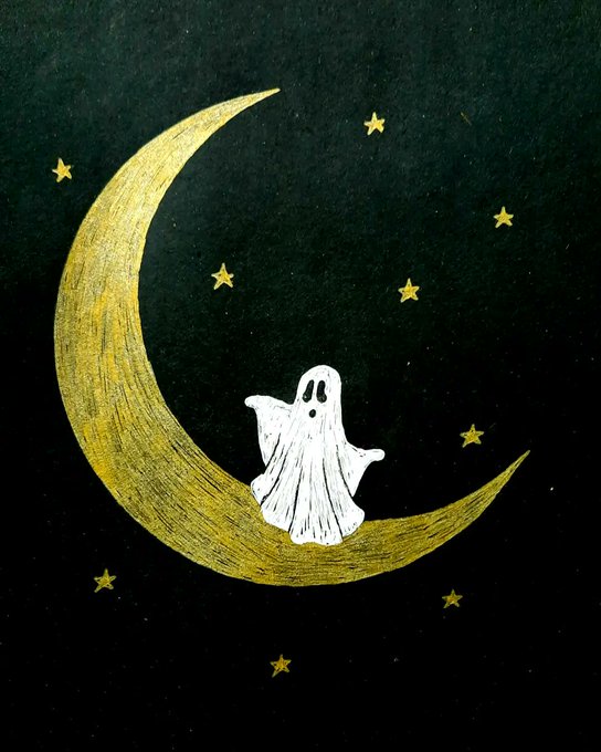 👻F A N🌙 For todays @inktober prompt, Ghostie is at his favourite place, amoung the stars as he is a huge fan of the moon and the stars 🌙 Let me know what you guys think 🤗❤ #Belfasthour #drawtober2021 #Halloween #spookymonth #ArtistOnTwitter #sketch #inktober2021 #Ghost #INK