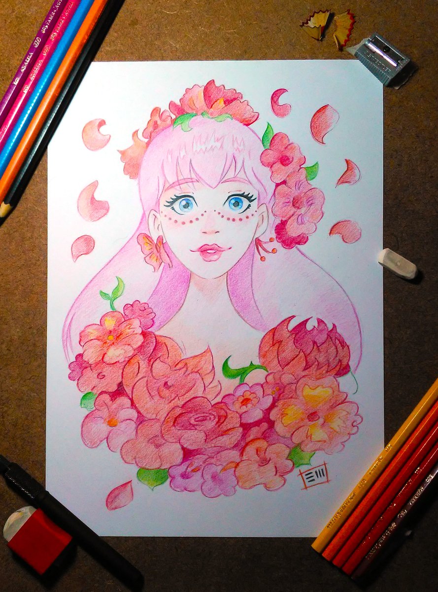 Não sou muito de fazer #fanart mas eu adorei essa animação, Belle. Tentei fazer no lápis de cor, mas as flores não ficarão tão boas. #bellefanart #belleanime #anime #lapisdecor