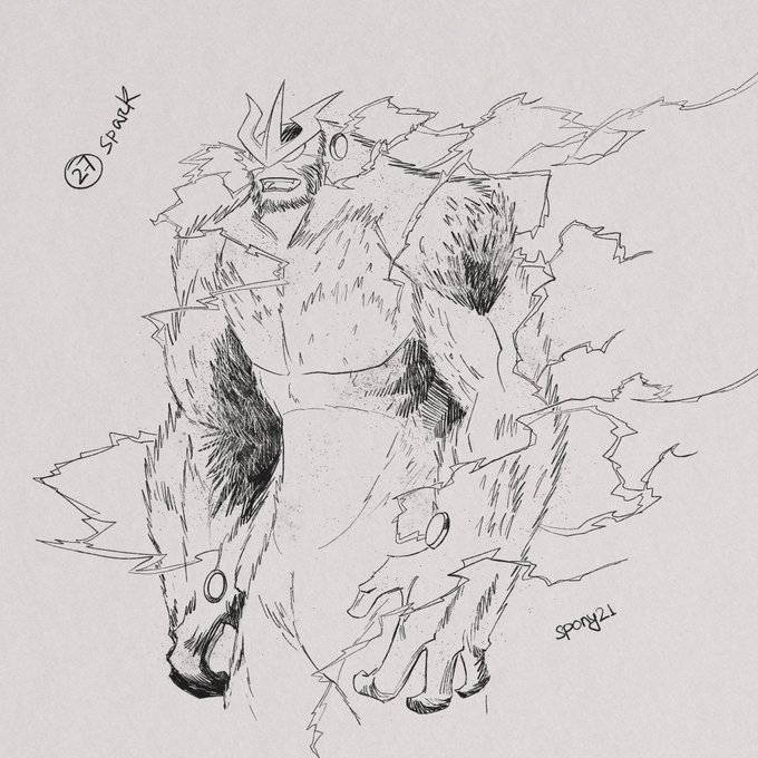 Inktober day 27 : Spark So I realised I never made Shocksqatch or any Gimlinopithecus, so it was a good opportunity . #Inktober #inktober2021 #inktoberchallenge #inkart #artist #INK #digitalillustration #dailyart #Ben10 #Ben10Omniverse