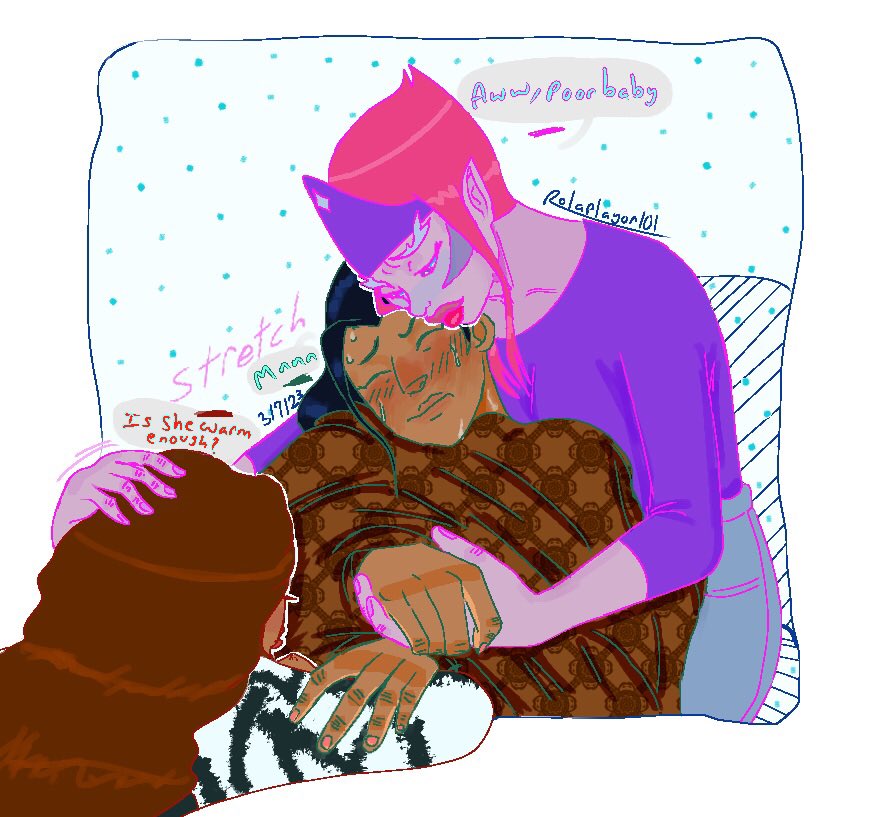 Happy #InternationalWomensDay #Ben10Omniverse fandom! #artmoots #イラスト Women supporting women! (Also for Multiamory month day 8: Sick) hc that Ester and Elena can’t get sick so they take care of Kai when she is DNI prrosshiip, enefftees/ai “artists”, NS FW accs, queerphobes