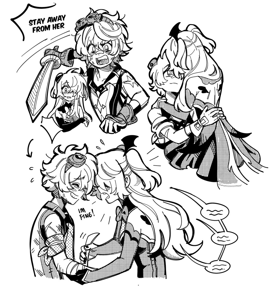when the guild’s ill-starred defenseman is kinda cute… #bennett #fischl #bennefischl #fischnett #GenshinImpact #原神 #genshinimpactfanart