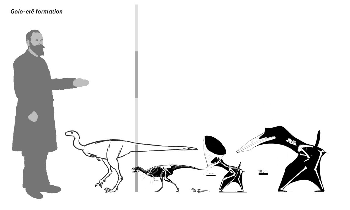 I did a sketch yesterday but forgot to safe it, oh well, this one is better anyway. Berthasaura incoming! Also a quick and dirty size chart of the localities' fauna. #paleoart #dinosaurs #ceratosaur #nosasaurid #berthasaura #brazil #pterosurs #sciart #scicomm