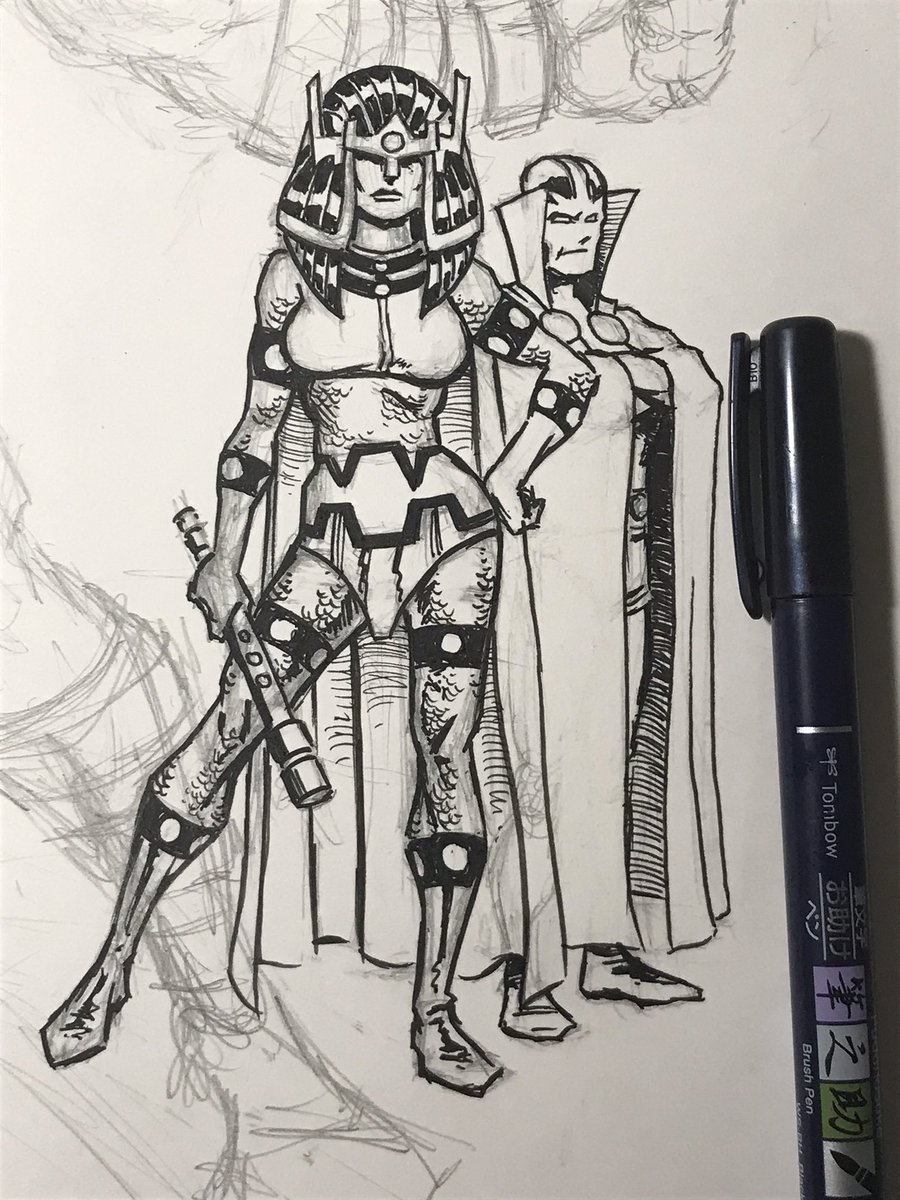 Commissioned black & white marker illustration of Mister Miracle and Big Barda! This was drawn in February of 2014 by the Dude #MisterMiracle #MrMiracle #BigBarda #SteveRude