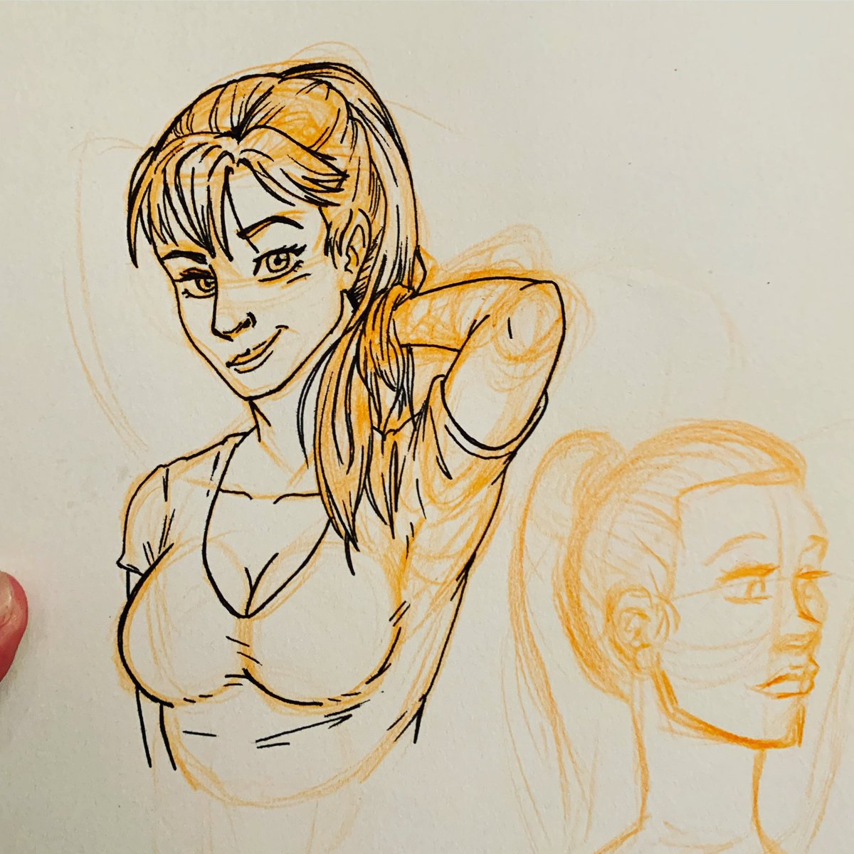 @inktober I’m playing catch-up again. I guess I kinda do that. Driving job does that I suppose… prompt is #ponytail but I’m just using it as an excuse to draw a #cutechick with #bigboobs because who doesn’t like that. Don’t answer that… #inktober #inktober2022 #inktoberprompts