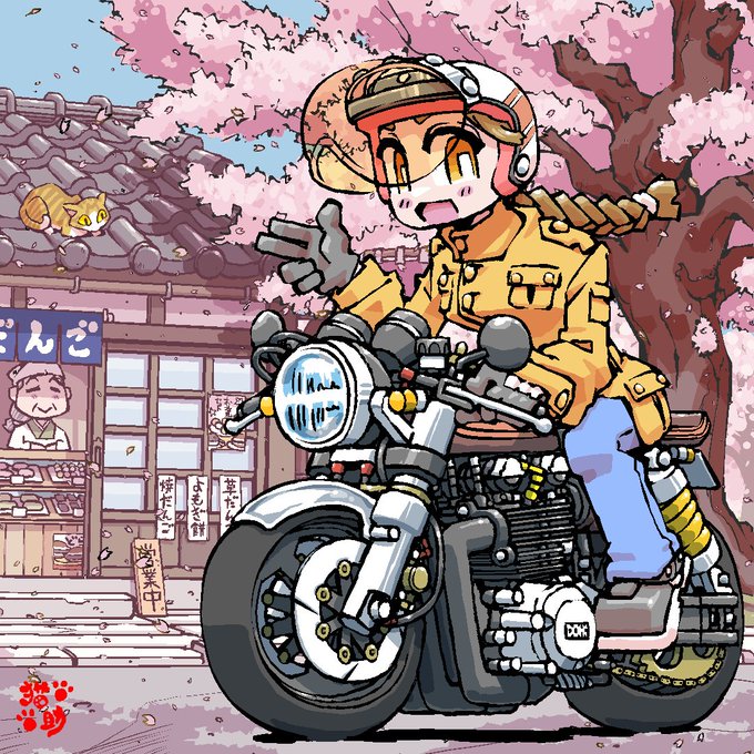 たまたま見つけた団子屋さんで お花見をさせて頂きました。 #イラスト #絵 #illustration #art #draw #artistsontwitter #bike #kawasaki #750RS #Z2 #あくまでも偶然の団子屋さん #この後ナンシーさんが