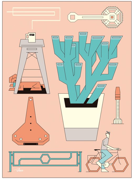 S夫人のためのビルド完了。共働きで多忙な日々を送る彼女にはバスケット付きのエブリデイバイクを。スタイリングを損なわないようワイヤー、ブレーキ、その他の各種スモールパーツは省きました。#illustration #buildabike #bike #bicycle #chromoly #smb #squarmodern #jun_takahashi