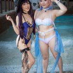 Great #GenshinImpact #cosplay at @ColossalCon East! #MonaMegistus - mikarizaki (IG) #kokomi - kuribbon (IG) @GenshinImpact #colossalconeast #bikinis