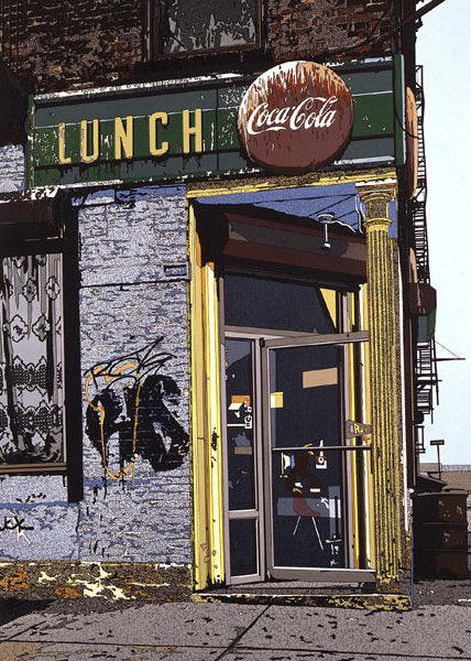 版画『LUNCH』 光と影が交錯する、摩天楼のセンチメンタルジャーニー。 gallery.eizin.co.jp/?p=242 #鈴木英人 #版画 #アート #イラストレーション #イラストレーター #アメリカ #都会 #コカコーラ #看板 #eizinsuzuki #illustration #illustrator #art #artwork #America #citys #CocaCola #billboard