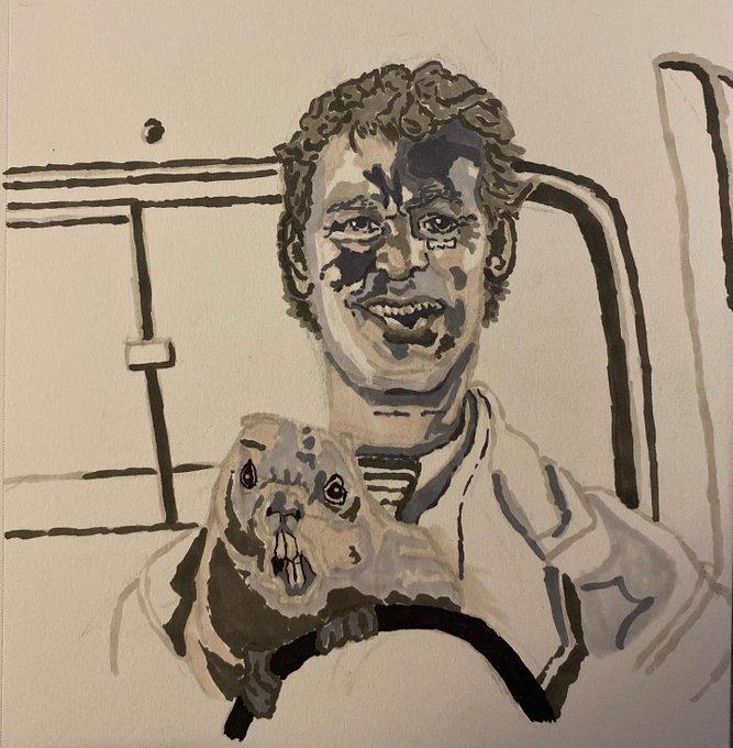 #stevezissou commission from my @crowdfundr_ currently going here crowdfundr.com/fareldal2020bo… for my book of drawings from 2020. It’s a little over halfway funded and you can get yourself a commission too. Just a few more spots left. #thelifeaquatic #billmurray #watercolor #20202020