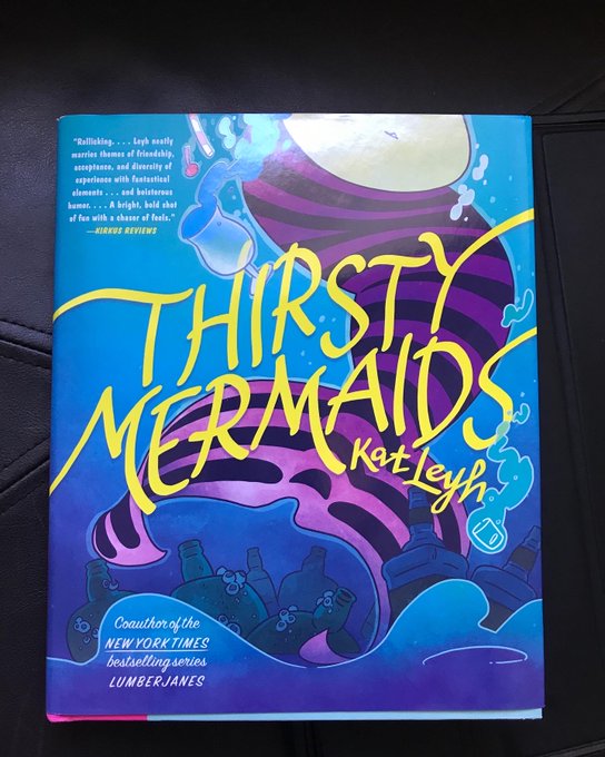 Damn but Kat Leyh's #ThirstyMermaids from @Gallery_13 is an artistic masterwork! #BillWatterson/ #CalvinAndHobbes style fun for adults & older kids (eg non-sexl nipples, drinking) a paint bomb of energy. Love these disreputable #mermay #graphicnovel simonandschuster.com/books/Thirsty-…