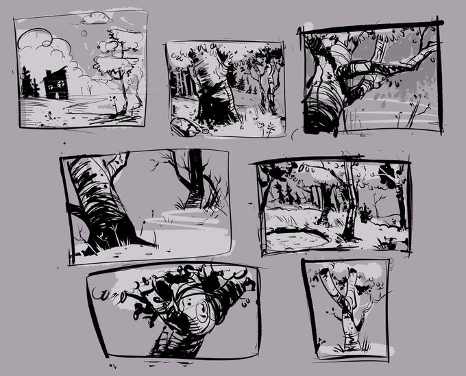 Nobody inks a tree as tasty as #BillWatterson, always been a fan so I decided to do some studies from reference and a couple just trying to mimic the style. #CalvinandHobbes #landscape #sketchbook #inktober2022