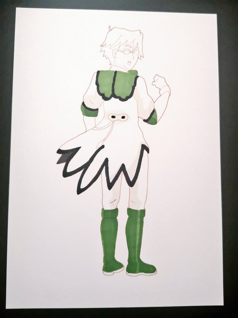 #Magicaltober Day 26.- Battle Lover Epinard. The hardworking member of #defenseclub. #ink #copiclinersepia #copicciao #whitepen #magicalboy #binankoukouchikyuuboueibulove #battleloverepinard #atsushikinugawa #copicgreen #green #octoberartchallenge #drawtober2021