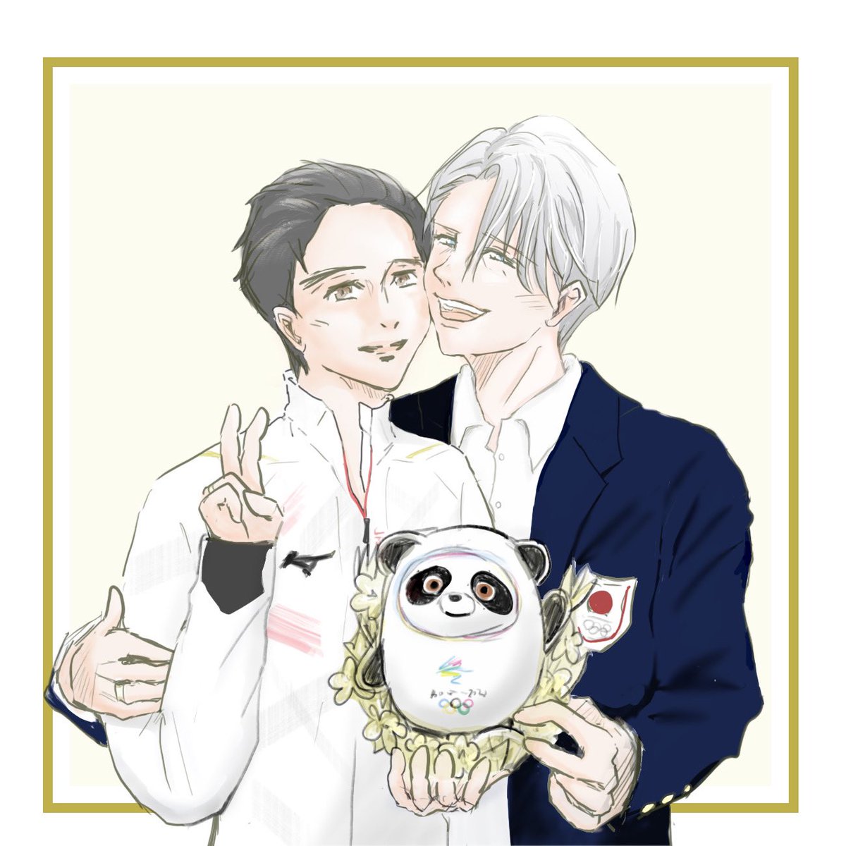 実況「羽生結弦とビンドゥンドゥンです」 とりあえず楽しい絵から描いて気持ちを落ち着けてみました🥲 まずは羽生さんの足の痛みが少しでも減っていくことを何よりも何よりも祈っています。お疲れ様でした!ドゥンドゥンもありがとう! #羽生結弦 #YuzuruHanyu #BingDwenDwen