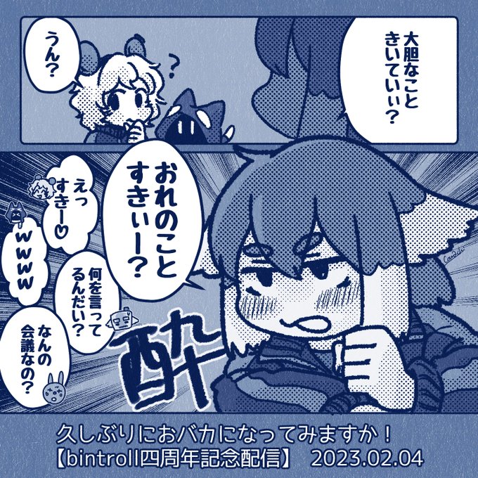 とても遅刻しましたっ!改めまして、 ㊗️ビントロール4周年おめでとう御座います🎉🎉5年目もハッピーな6人で✨ #bintrollFA #bintroll四周年記念配信 #bintroll四周年記念