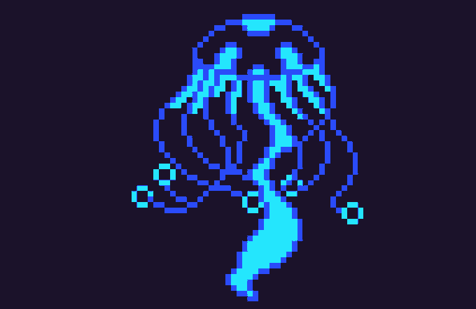 My #Bioluminescence jellyfish for @Pixel_Dailies [128x128][16 colors] #pixel_dailies #pixelart #ドット絵