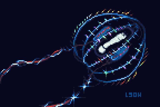 Today's @Pixel_Dailies theme, #Bioluminescence 𝑴𝒆𝒓𝒕𝒆𝒏𝒔𝒊𝒂 𝑶𝒗𝒖𝒎, 𝑪𝒕𝒆𝒏𝒐𝒑𝒉𝒐𝒓𝒆! Also known as the comb jelly #pixel_dailies #pixelart #ドット絵 #aseprite #digitalart #retroart #ctenophore
