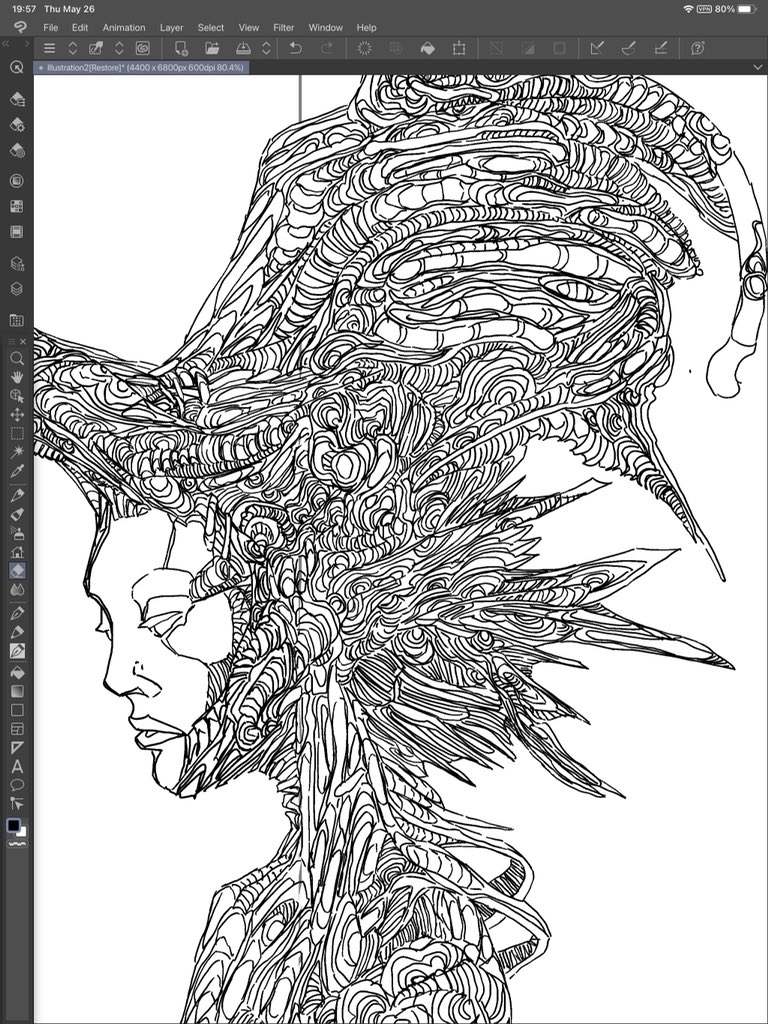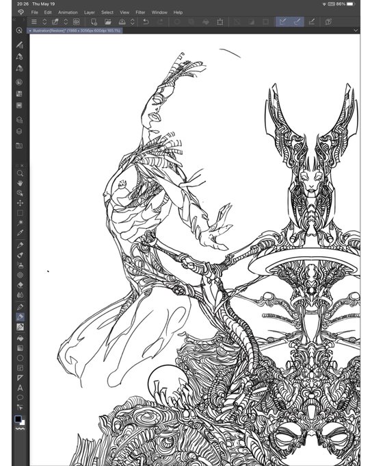 Something is happening here #wip #digitalart #digitaldrawing #digitalillustration #illustration #composition #art #artwork #line #lineart #linework #inking #scifi #scifiart #biomech