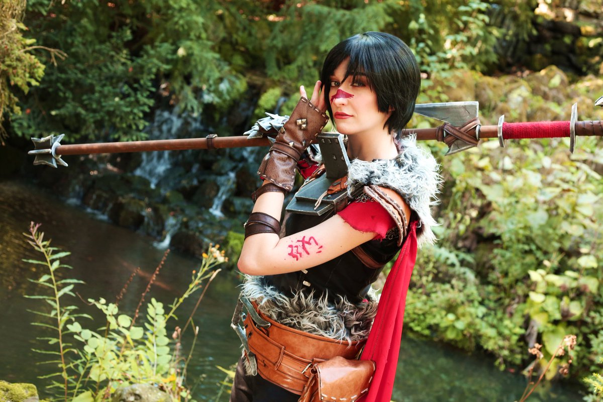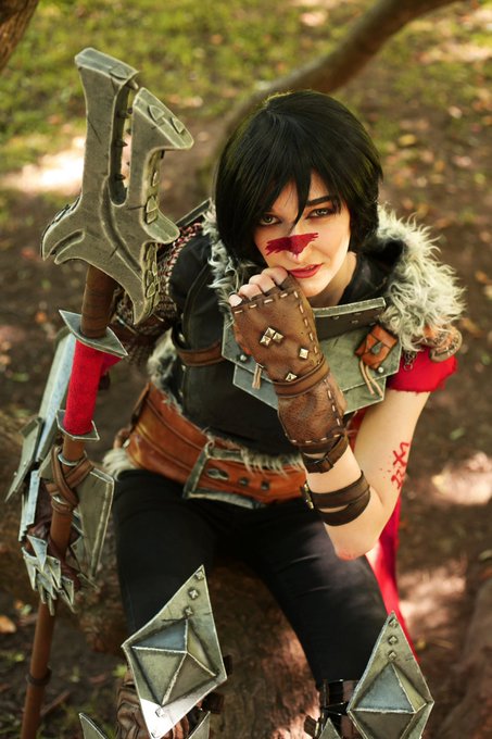 The wig for this Cosplay is an absolute pain. It's heavy in the back and drags down the whole time plus it's tight. So headache is for sure Pic @miclast #cosplay #dragonage #dragonagecosplay #dragonageinquisition #lavellan #lavellancosplay #bioware #biowarecosplay #biowaregames