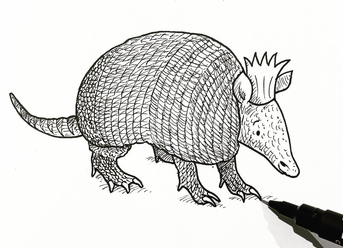 Inktober Day 15 - Armadillo @inktober #inktober #inktober2022 #ink #pen #armadillo #birthdayarmadillo #drawing #animal #illustration #art #artwork #birthdaydrawing #cute 🎈