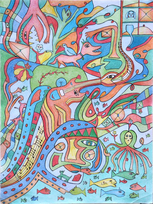 Today is my birthday! Yeah, I'm grateful for another day of life. I finished another expressionistic piece called - 'Mutiverse'. Pen & Ink & Color Pencil. #art #ArtistOnTwitter #Creative #expressionistic #lauriemiller #colorful #drawing #inkdrawing #BirthdayVibes #Wednesdayvibe twitter.com/i/web/status/1…