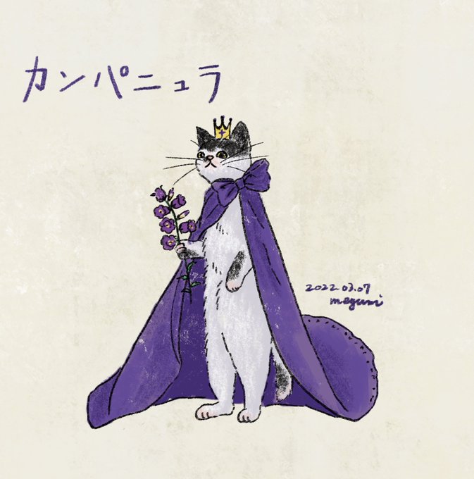 久々に誕生花を調べたら3/7の誕生花はカンパニュラでした。花言葉は思いを告げるです。 #花言葉 #誕生花 #カットイラスト #イラストレーション #挿絵 #birthflower #イラスト #絵本 #猫イラスト #catillustration
